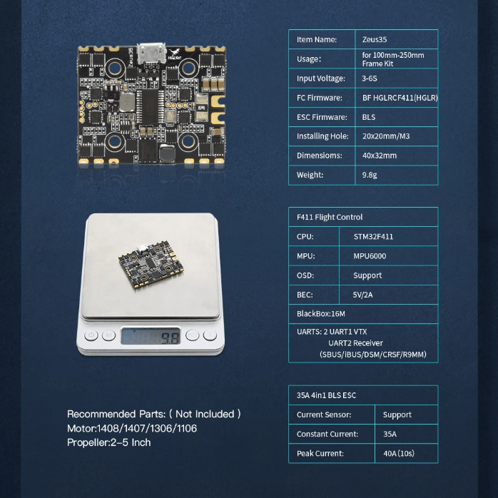 Hglrc Zeus35 Aio 3 6s F4 Flight Control 35a Bls 4in1 Esc 20x20